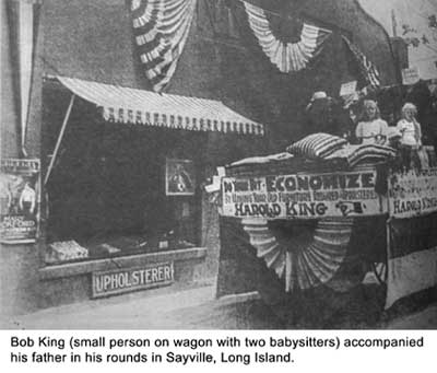 Roger is also familiar with sun and shade in Shelburne Falls and has installed awnings at 10 Bridge Street and at Good Spirits, but he also goes as far as North Adams, Northampton and Brattleboro to find the sunny side of the street. Bob went to those places as well. "To this day," he said, "we're well known in those towns. Maybe thats because we always did business in the old-fashioned, ethical waywe measured out the job, said what it would cost, and then did it for what we said." Bob will reach 80 this year and still keeps his hand in the business, which operates out of a shop he and his sons built in East Charlemont on the Mohawk Trail. That business includes supplying awnings for residences as well as stores, and covering swimming pool areas. One of King Awnings biggest jobs is supplying canopies during the summer at Williams College. If an awning is being replaced, the new material is often stretched on the old steel frame, which Roger says will last a lifetime. Awnings, on the other hand, are usually replaced after 15 or twenty years. "People want awnings," he says, "not only for cover but to attract attention or to accent the public space in front of their stores. An awning can complement a sign, or the valance itself can be lettered," he said. If no frame is in place that also can be built. Rogers father said he came to Shelburne Falls from Sayville, Long Island, "because times were so bad during the depression. I got a job at Mayhews for 35 cents an hour, but I was ambitious, dont you know, like young people tend to be. So it wasnt long before I started doing what Id learned from my dad." He, too, began working on awnings when he was just a child. "I remember my dad waiting for me to get home from school so I could fix the sewing machine," he laughs. "I guess as a boy, I went everywhere with him." From that, it was just a step to forming his own business in West County. "I guess," says Roger, "that the jobs we had as boys were important to us. We worked like crazy in the summer to keep up, and it kept the family going. But we also learned important things, like manual skills and how to deal with people. I still think of those things as valuable." return to home page back to top |